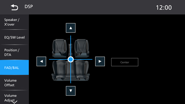 - Klepnutím na C, D, R a S nastavíte vyvážení hlasitosti.