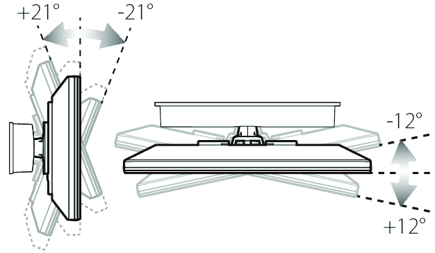 - Svislý náklon: ±21°, vodorovný náklon: ±12°