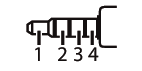 ⑤ | Esta toma acepta AV-IN o entrada de cámara de visión delantera. Para obtener más información, consulte Configuración de entrada. Miniclavija de 4 polos de 3,5 mm (1; audio izquierdo, 2; vídeo, 3; tierra, 4; audio derecho)