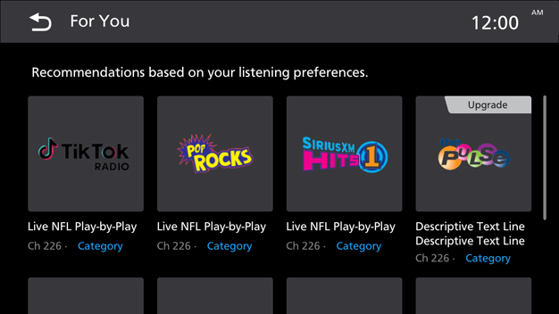 para acceder a la pantalla Para usted. - Toque para reproducir el Canal seleccionado.
